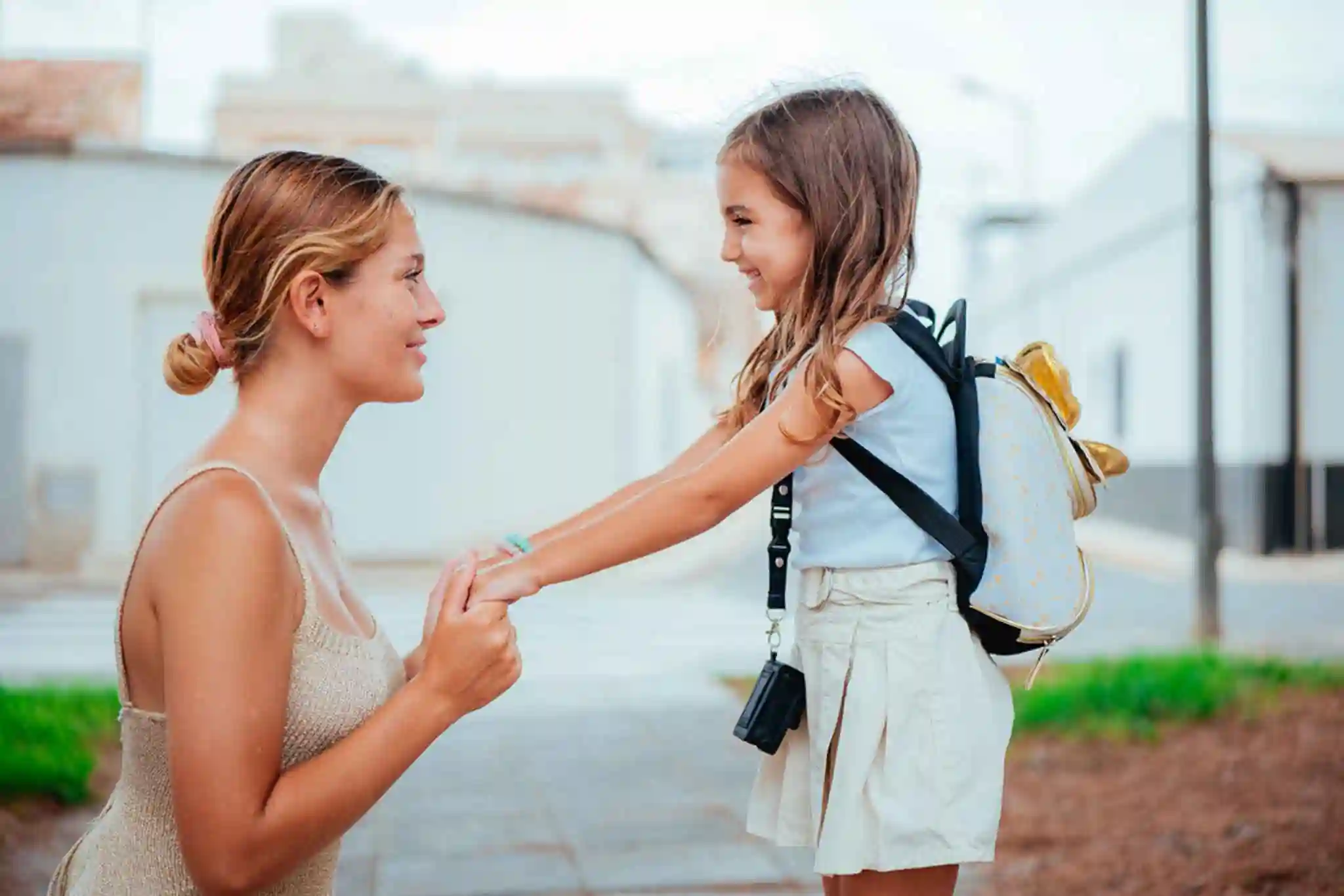 mother packing their kids back with Easy finder 4G GPS tracker